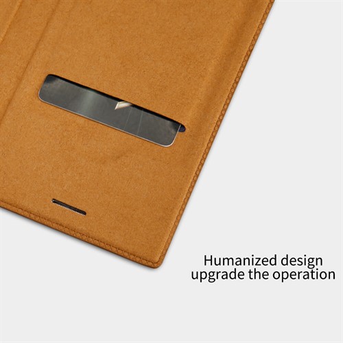 ظرافت و باریکی این کیف به گونه ای می باشد که ضخامت بسیار کمی به گوشیتان می افزاید البته قسمت لنز دوربین مقداری برجسته بوده تا از دوربین های بیرون آمده در برابر خط و خش محافظت کند.روکش داخل کیف چرمی نیلکین مدل Qin نرم و مخملی بوده که به رغم آن در بلند مدت هیچگونه آسیب و خط و خشی بر روی بدنه و یا صفحه نمایش گوشی پس از بسته شدن درب کیف وارد نمی سازد.جنس قسمت های اطراف و لبه های کیف که بخش اصلی محافظ گوشی را در بر می گیرد از پلاستیک سخت بوده که مقاوم در برابر ضربه،شوک، خط و خش است.اندازه این کاور به گونه ای است به سادگی گوشی داخل آن قرار می گیرد و هیچگونه فشاری از طرف کیف به گوشی وارد نمی شود.کمپانی Nillkin به خوبی محفظه های گوشی را مانند دوربین،پورت شارژ و ... را برش داده و هیچگونه مشکلی کاربر از این بابت با کاورهای این برند نخواهد داشت.در ضمن در داخل این کیف یک اسلات جهت حمل کارت اعتباری،بانکی و ... تعبیه شده تا همیشه کارت پر مصرفتان در دسترستان باشد،در ضمن به دلیل ضخامت و جنس مرغوب این اسلات هیچگونه آسیبی چه از طرف گوشی به کارت و چه از کارت به گوشی وارد نمی شود و جای نگرانی نیست.