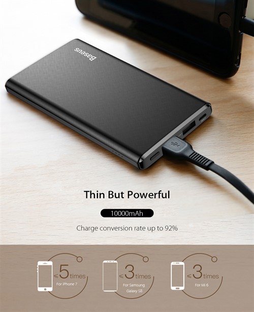 کمپانی بیسوس از محدود شرکت هاییست که هر کدام از محصولاتش با یکدگیر چه از حیث طراحی و چه سیستم آن تفاوت زیادی دارد و همیشه سعی بر تولید محصولات خاص و منحصر به فرد داشته است. یکی از محصولات ساخت این شرکت پاوربانک M10 بوده که از طراحی خاص و زیبایی بهره می جوید.این پاوربانک از بدنه ی ساخته شده از ABS+PC پوشیده شده و از مقاومت بالایی در برابر ضربه و خط و خش داراست.طرح زیبا و ساختار مناسب آن به کمک بهره گیری از مواد اولیه علاوه بر زیبایی بر میزان مقاومت پاوربانک نیز افزوده است.Baseus M10 دارای استاندارد های جهانی CE، FCC، ROHS بوده و قادر است شارژی بسیار امن و سریع را به تمامی دستگاه ها ارائه می کند.این محصول دارای دو خروجی USB بوده که هر دو توان خروجی معادل 2 آمپر را دارا است در ضمن پورت میکرو یو اس بی USB ورودی جهت شارژ خود پاوربانک نیز 2 آمپری است،البته پورت های خروجی این پاوربانک قادر هستند با شدت جریانی معادل 2.4 آمپر نیز فرایند شارژ را انجام دهند،بدین ترتیب شما نیز قادر هستید پورت 2.4 آمپری شارژی بسیار سریعتر از حالت عادی داشته باشید یعنی با سرعت شارژ تقریباٌ دو برابرسایر پاوربانک ها ،دستگاه مورد نظرتان را شارژ نمایید.