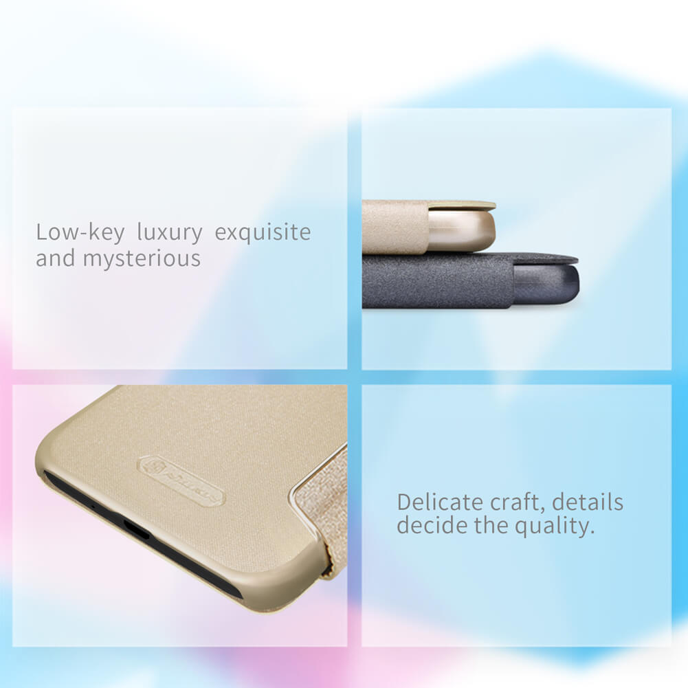 پوشش داخلی کیف از جنس میکروفایبر بوده که سطحی نرم داشته و آسیبی به صفحه نمایش نمی رساند و روی صفحه نمایش، خط و خراشی ایجاد نمی کند.لازم به ذکر است که برای استفاده از حالت های هوشمند این کیف نیاز می باشد که حالت Quick Cover View را از تنظیمات فعال کرده باشید.ساختار و طراحی قسمت بیرونی کیف های سری Sparkle نیلکین به گونه ایست که جنسی ضد لغزش داشته که با دست اصطکاک ایجاد کرده و مانع از مانع از لغزش و سقوط ناگهانی گوشی می‌شود.در ضمن این کیف دارای آهنربای داخلی بوده که در زمان بسته شدن باعث خاموش شدن خودکار صفحه نمایش دستگاه می شود تا بر میزان عمر باتری دستگاه بدین سبب بیافزاید.