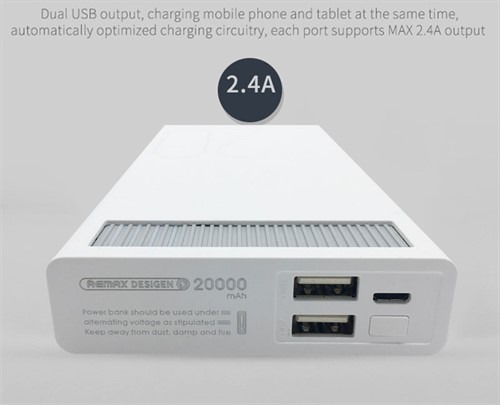 Remax RPL-58 خوش ساخت با بدنه ای منحنی بوده که انحنای لبه ها و طرح بدنه باعث می‌شود ، محصول خوش‌دست‌تر بوده و گریپ بهتری داشته باشد و از دست گرفتن آن حس لوکس بودن را برایتان به دنبال آورد.این پاوربانک 20000 میلی آمپری قابلیت اتصال به  انواع تبلت ها و گوشی های تلفن همراه و لوازم صوتی و تصویری دیگر مثل پخش کننده های MP3 و MP4 دوربین عکاسی و فیلمبرداری ، مکان یاب های ماهواره ای یا GPS ها و هزاران وسیله USB دیگر را دارد.یکی از مزیت های این پاوربانک داشتن دو خروجی USB می باشد که با داشتن شدت جریان خروجی 2.4 آمپر شارژ سریعی را به شما ارائه می دهند و شما هم زمان می توانید دو دستگاه را با آن شارژ کنید ( البته توجه کنید در صورت شارژ همزمان دو دستگاه هر پورت شدت جریانی معادل 1.2 آمپر خواهد داشت ).
