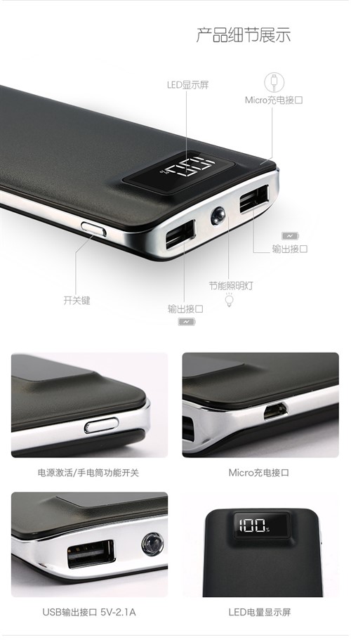 این پاوربانک در قسمت بالای خود دارای یک چراغ قوه بوده که به کاربر در مکان های تاریک کمک می کند تا مسیر خود را به راحتی پیدا کند و یا در مکان های تاریک گوشی موبایل خور را به راحتی با این وسیله پیدا کنید.در قسمت بالای پاوربانک Joyroom JR-D121 یک نمایشگر LCD قرار گرفته که وظیفه آن نمایش میزان شارژ پاوربانک بوده و به کاربر این امکان را می دهد تا میزان شارژ پاوربانک خود را مدیریت کند.
