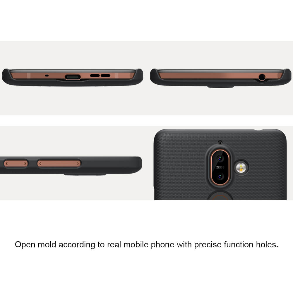 کاور محافظ نیلکین مدل Frosted Sheild یک کاور سخت PC سازگار با محیط زیست می باشد.کاور سطحی با دانه های ریز برجسته داشته که باعث عدم لیز خوردن گوشی هنگام کار با آن می شود این کاور به خوبی از قاب پشتی و لبه های جانبی گوشی محافظت می کند.مدل های Frosted Sheild همانند سایر محصولات برند نیلکین از کیفیت ساخت بالایی برخوردار می باشد و با دقت بالایی بر اساس ابعاد و اندازه های گوشی طراحی و ساخته شده اند.هر دو طرف قاب مات و مقاوم در برابر ضربه،شوک،گرد و غبار و ضد اثر انگشت است.داخل پک این کاور یک عدد محافظ صفحه نمایش مناسب نوکیا 7 پلاس نیز قرار دارد.