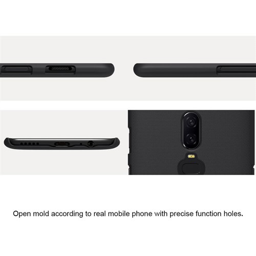 کاور محافظ نیلکین مدل Frosted Sheild یک کاور سخت PC سازگار با محیط زیست می باشد.کاور سطحی با دانه های ریز برجسته داشته که باعث عدم لیز خوردن گوشی هنگام کار با آن می شود این کاور به خوبی از قاب پشتی و لبه های جانبی گوشی محافظت می کند.مدل های Frosted Sheild همانند سایر محصولات برند نیلکین از کیفیت ساخت بالایی برخوردار می باشد و با دقت بالایی بر اساس ابعاد و اندازه های گوشی طراحی و ساخته شده اند.هر دو طرف قاب مات و مقاوم در برابر ضربه،شوک،گرد و غبار و ضد اثر انگشت است.داخل پک این کاور یک عدد محافظ صفحه نمایش مناسب وان پلاس 6 نیز  قرار دارد.