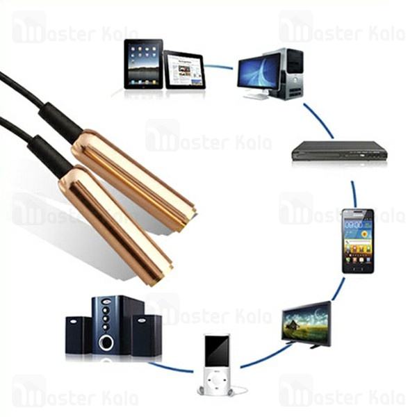این محصول دارای یک کانکتور نری aux و دو کانکتور مادگی aux بوده و همین امر باعث شده تا بتوانید همزمان از یک منبع پخش با دو خروجی موسیقی مورد علاقه خود را پخش کنید.طول این کابل 40 سانتی متر بوده و همین امر باعث شده تا هرگز فضایی را اشغال نکند تا شما بتوانید به راحتی آن را در هر مکانی به همراه خود داشته باشید.سری های این محصول دارای یک روکش فلزی بوده که همین امر باعث شده تا مقاومت آن در برابر ضربه و فشار بالا باشد.